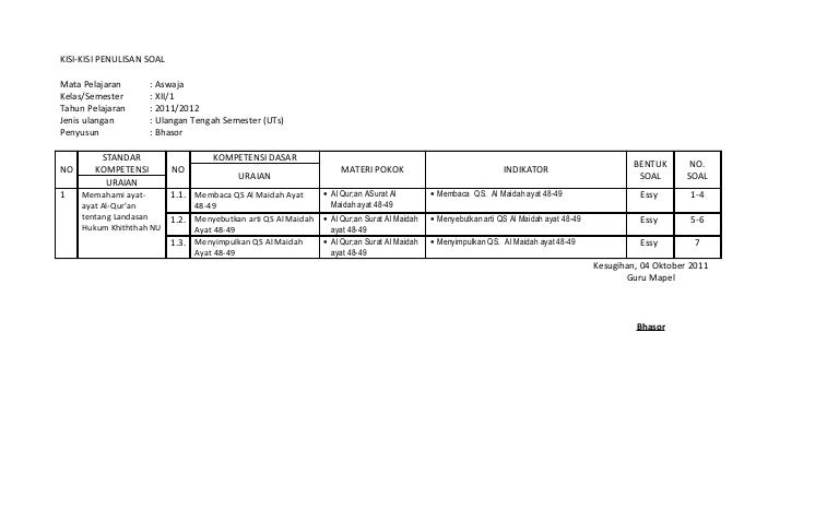 for "Soal Uts Aswaja Kelas 12 Semester 1 : Terbaik Soal Aswaja Beserta Jawabannya Kelas Xii - Contoh soal uts pai kelas 12 semester 1 beserta ja."